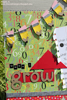 For the title I used my Cuttin' Up cricut cartridge to cut out the word "grow" using some cardboard from the back of a paper pad. I used my DYMO label buddy to spell out the words "When I" and I hand cut the arrow for "up" to complete my title! I used notebook patterned paper and my Stampin' up! Spiral punch to make the fun journaling spot!